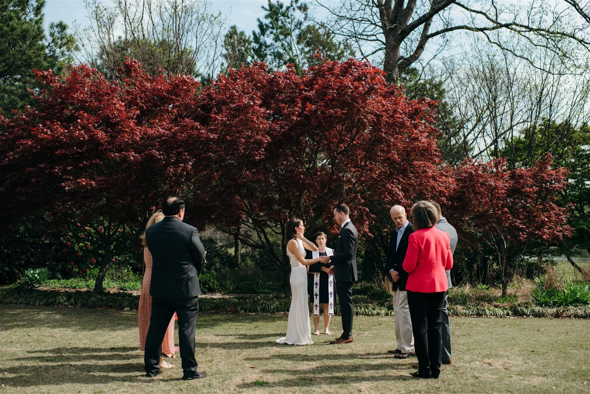 A lot of people will be tuning into the festivities via a digital broadcast. I’ve noticed that using an app that connects everyone together, like Zoom to broadcast your nuptials works best. Make sure to have a hot spot or a strong WiFi signal and place computer in a good spot to see the magic, Skype seems to have the worst coverage, but Facetime and Zoom have been doing well.